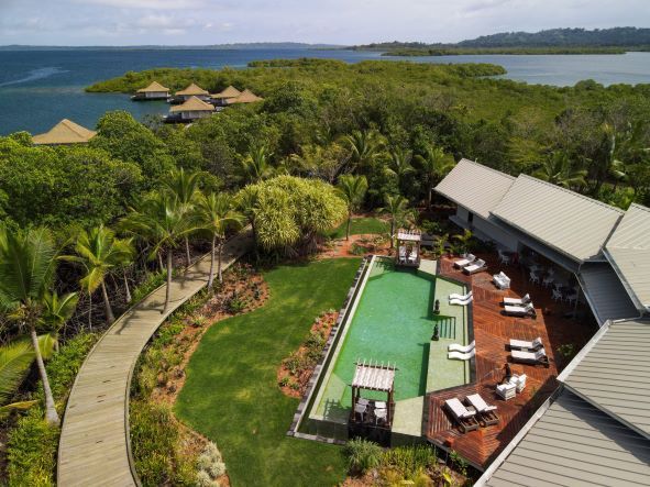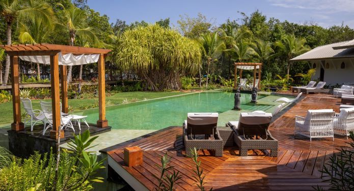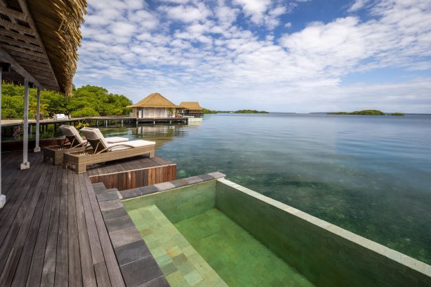 Bocas Bali has a restaurant over the water called Elephant House serving dinner and cocktails at sunset. In addition, Coral Café serves breakfast, lunch, and drinks in the Club House, included in rates. Both restaurants serve a la carte only. The resort’s 7 villas are divided between Pool Villas featuring their own private saltwater pool, luxurious King bed, private terrace, air conditioning, complimentary high-speed WiFi, smart 4K, TV for WiFi connection, coffee machines safety deposit box. The Glass Floor Villas are luxury water villas feature a section of glass floor to view the sea life below from inside the villa with same amenities as the Pool Villas minus the pool.